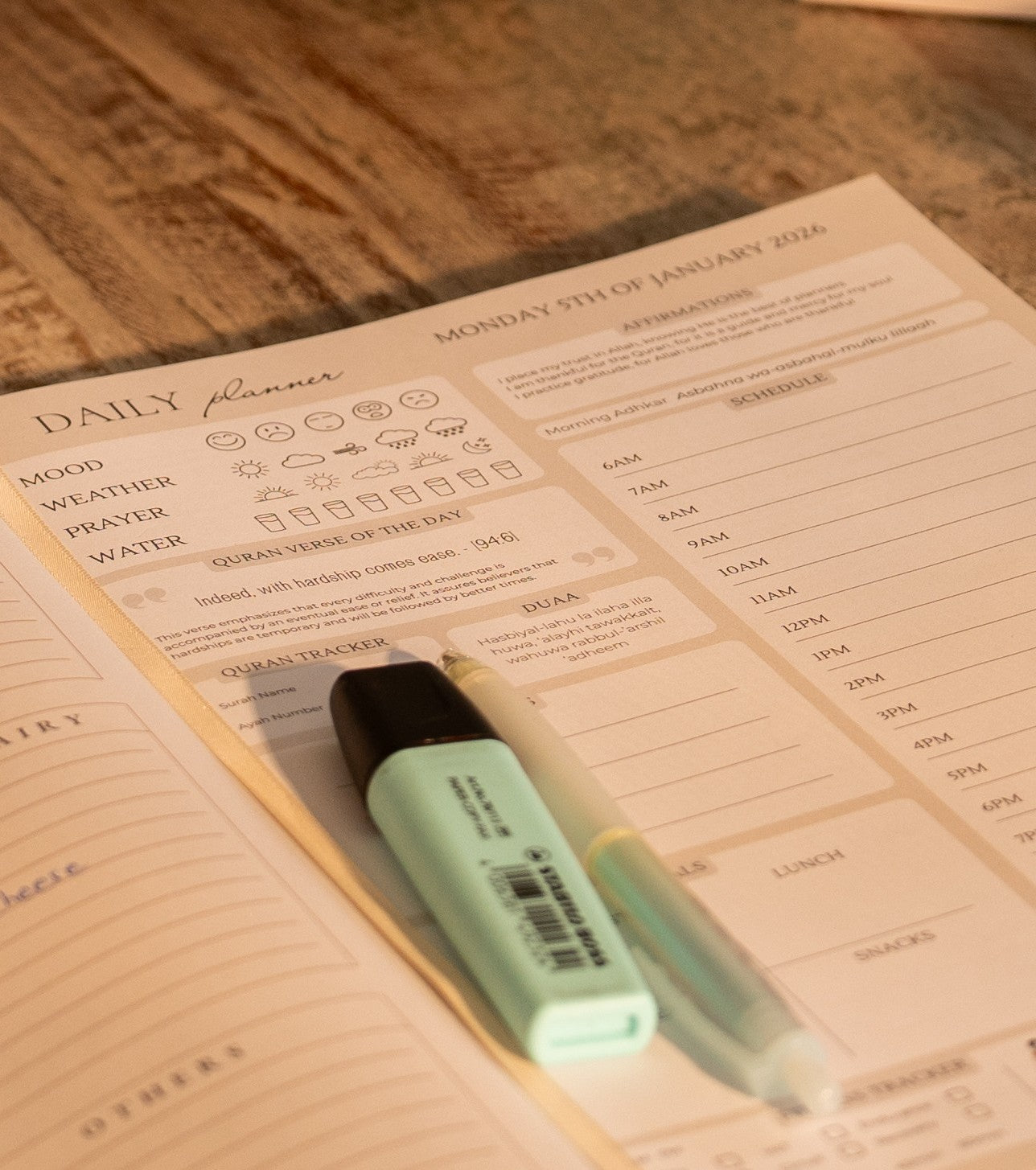 Find a balance between Deen and Dunia. A planner designed to help Muslim women live with purpose, balance and barakah - every single day